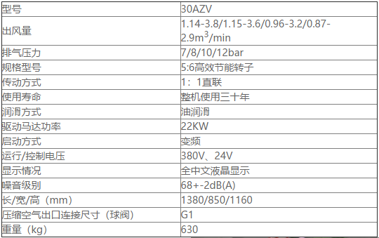 昆能變頻螺桿空壓機參數